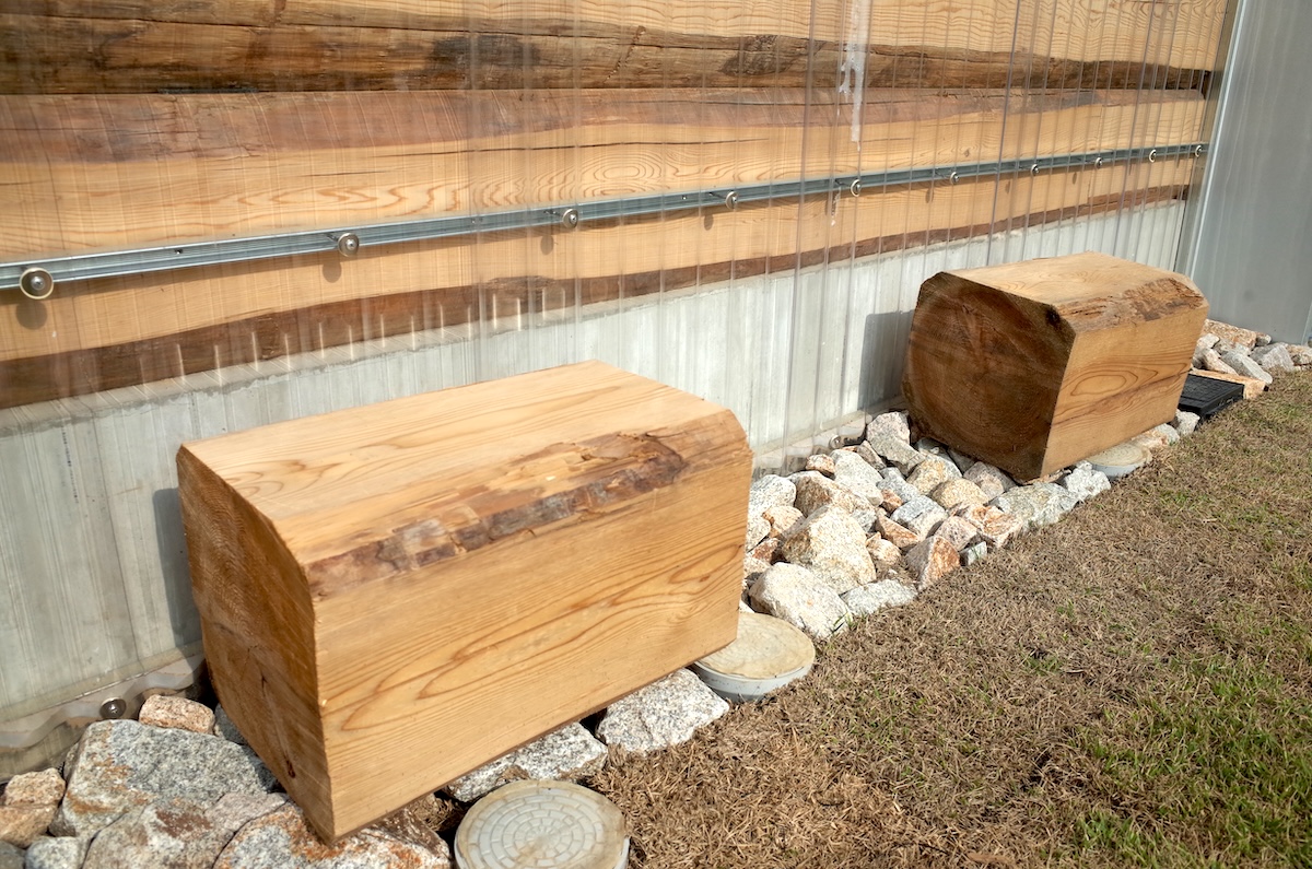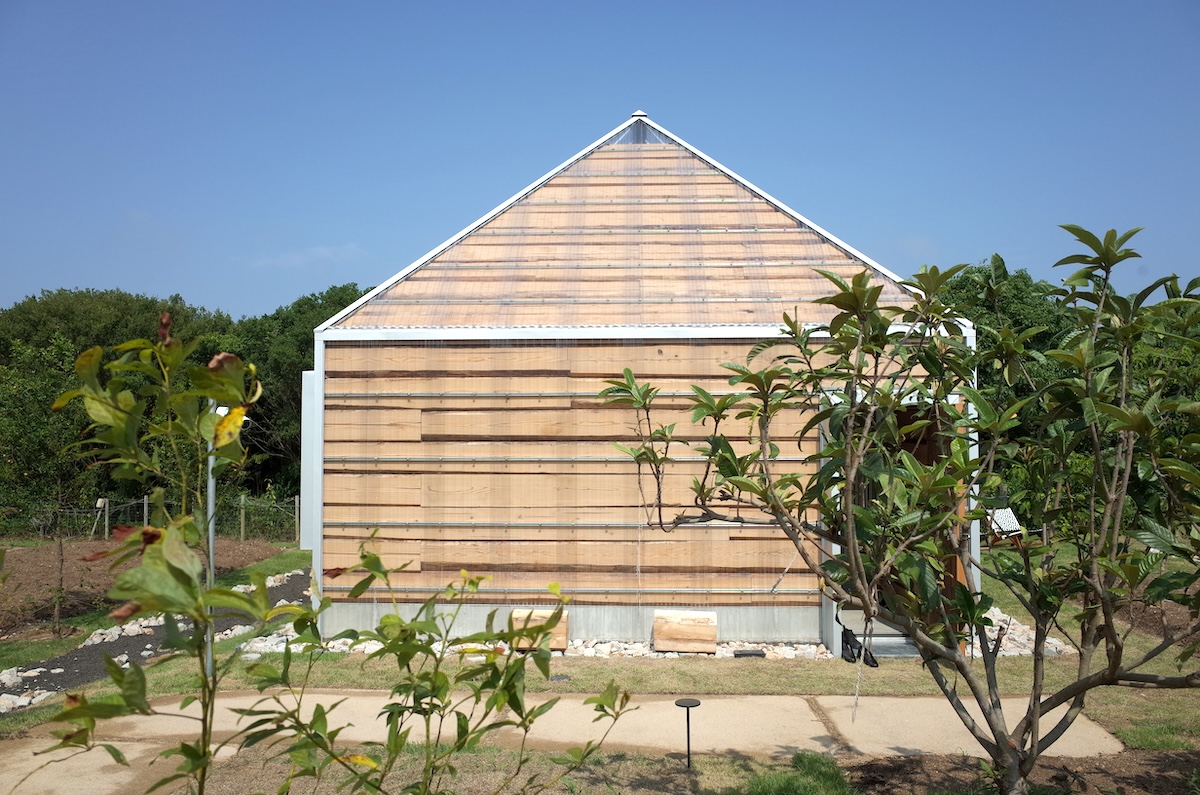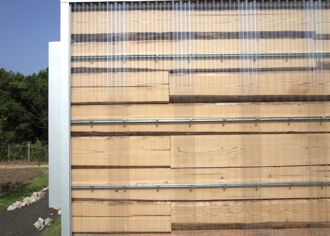木材の弱点である雨から守るためポリカーボネートで建物を覆う。