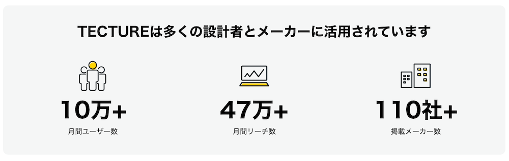 TECTUREでは、建材・家具メーカーを対象に、期間限定の「特別トライアルキャンペーン」を開始しました。設計者への認知拡大、サンプル請求や事例掲載につながる「TECTURE」の全機能を体験できます。