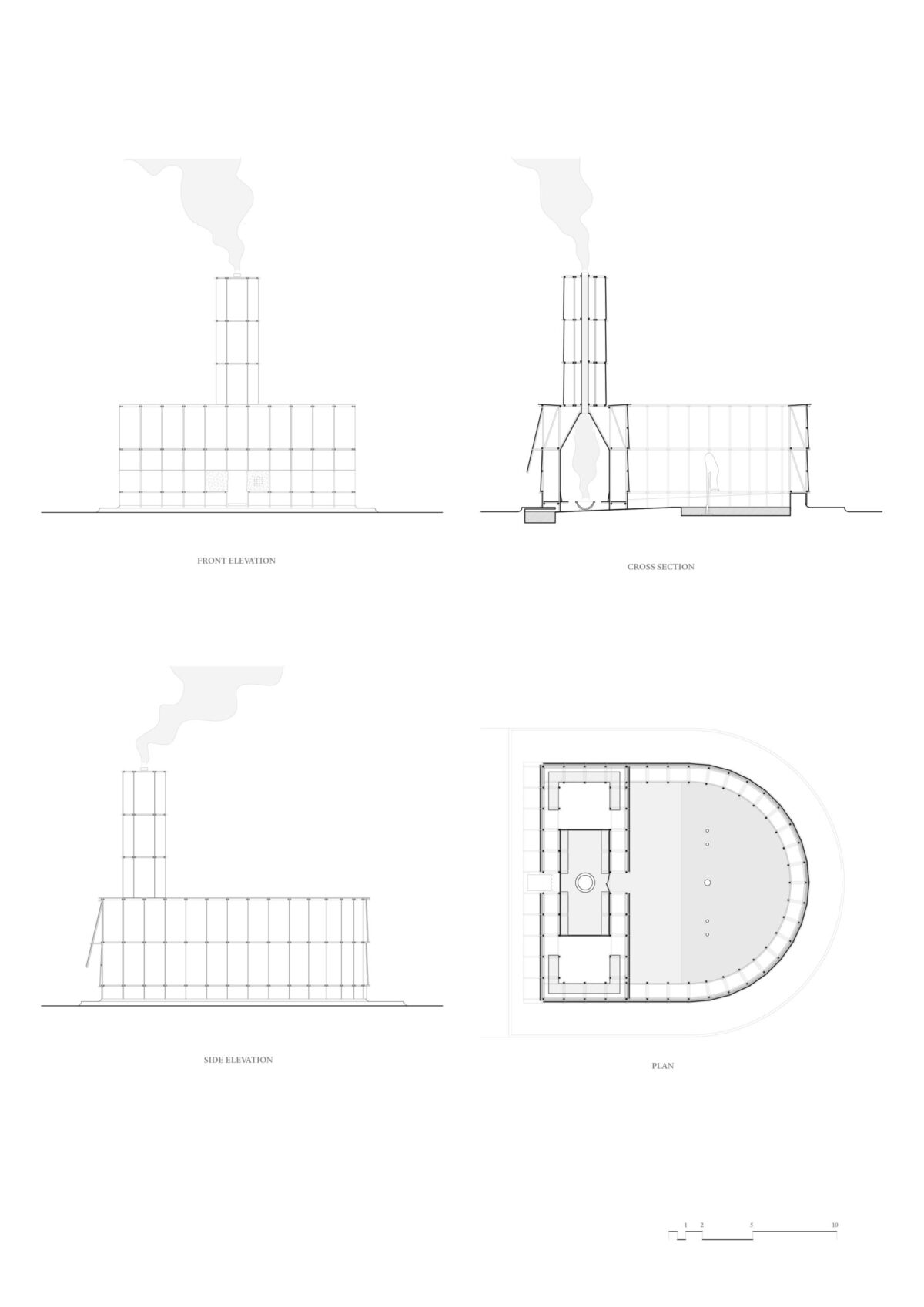 Combining changing rooms, steam rooms and cold-water fountain basins, Round About Baths offers privacy while occupying a central point in the city. Revealing hidden potentials in a car dominated urban environment, the temporary public program hacks the street equipment and transforms our perception of this forgo;en space.