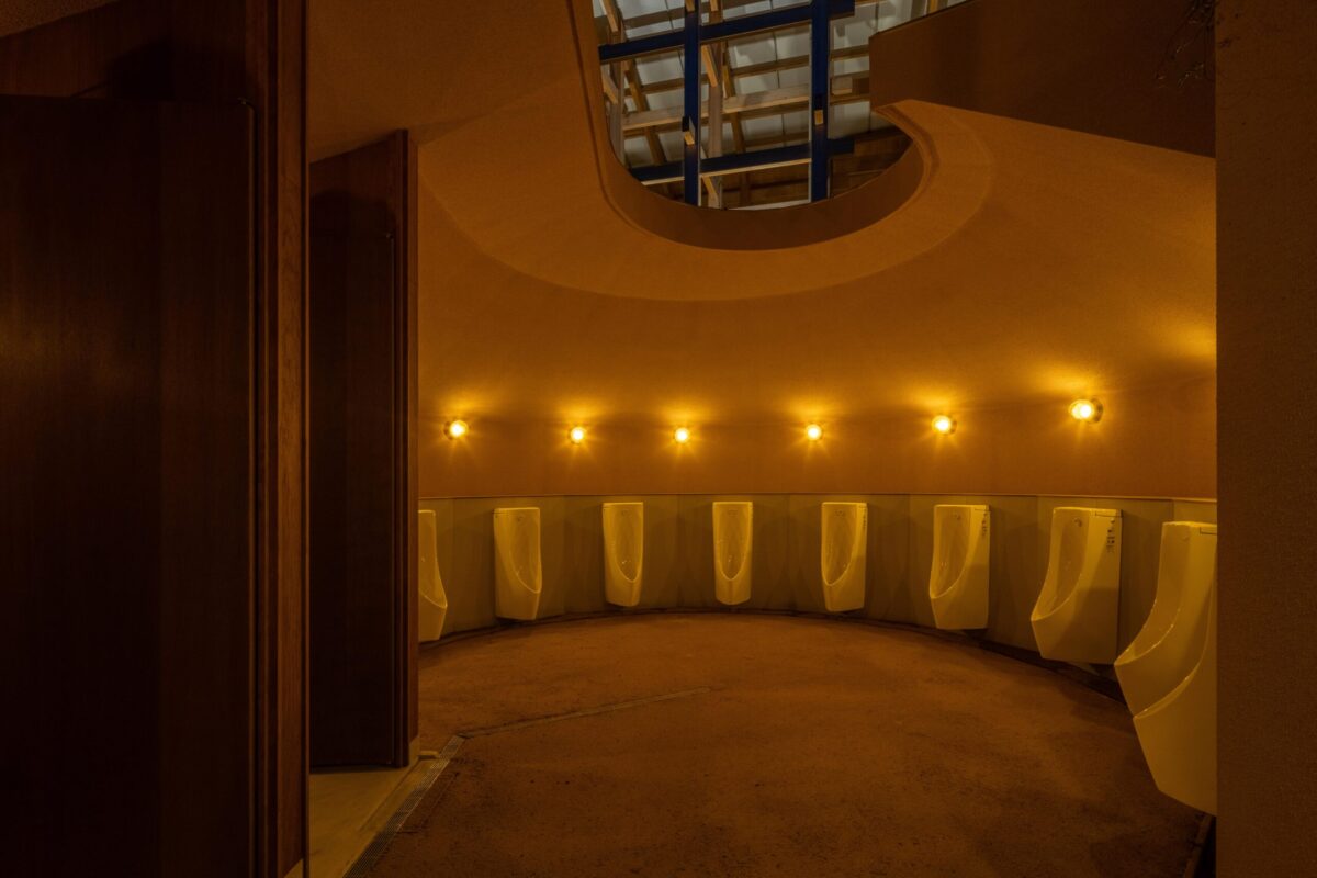 〈トイレ4〉では、建設用3Dプリンターと土壁の素材を融合させ、層状に出力することで、大地から立ち上がるような有機的なかたちを生み出しました。土という原始的な素材と最新技術を組み合わせながら、人の身体や感覚に寄り添う「身体に本当に必要なかたち」を問い直す試みです。