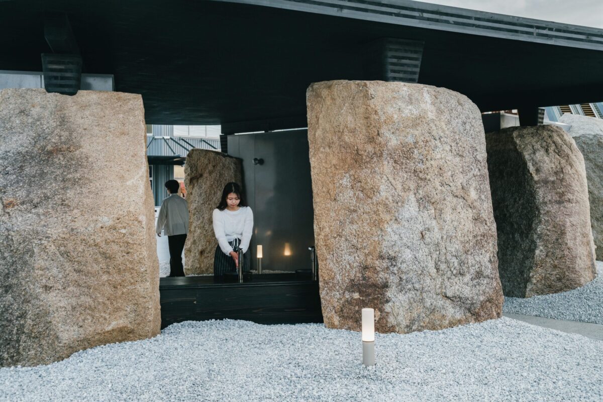 この行為は、あらゆることに意味が求められる現代において、祭りのように本来の人間の姿を体現する試みでもある。建築を設計するうえで、自然がもつ本来の質をし、それぞれの石がどうあるべきかを五感で感じ、見極めることから始まる。自然物(地球の中で数百年もの時間をかけて固まった花崗岩)を起点とする設計は、人の手を離れ、石の表情がそのあり方を決定づける。石の本来の姿を尊重しながら、石単体としてではなく建築として統合し、空間の中で人間の居場所を生み出す。