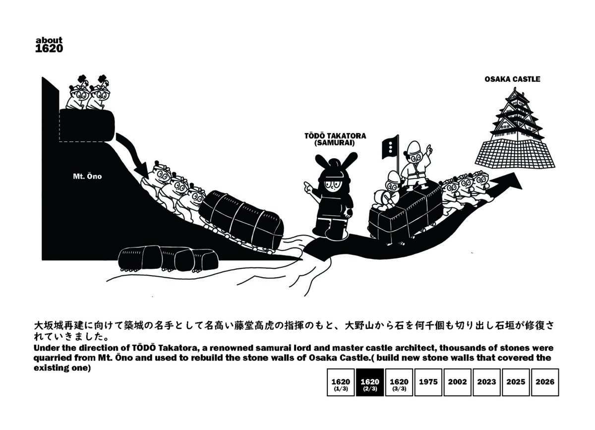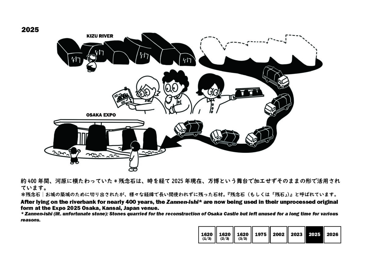 「大坂城石垣建設のために切り出された残念石と呼ばれる石を、400年の時を経て大阪へ運び建築 をつくる」という試みを行っている。一見すると誰の利益にもならない”巨石を運ぶ”という行為に、なぜか人々は魅了され、集まり、議論を巻き起こし、そして石を運び建築をつくることができた。