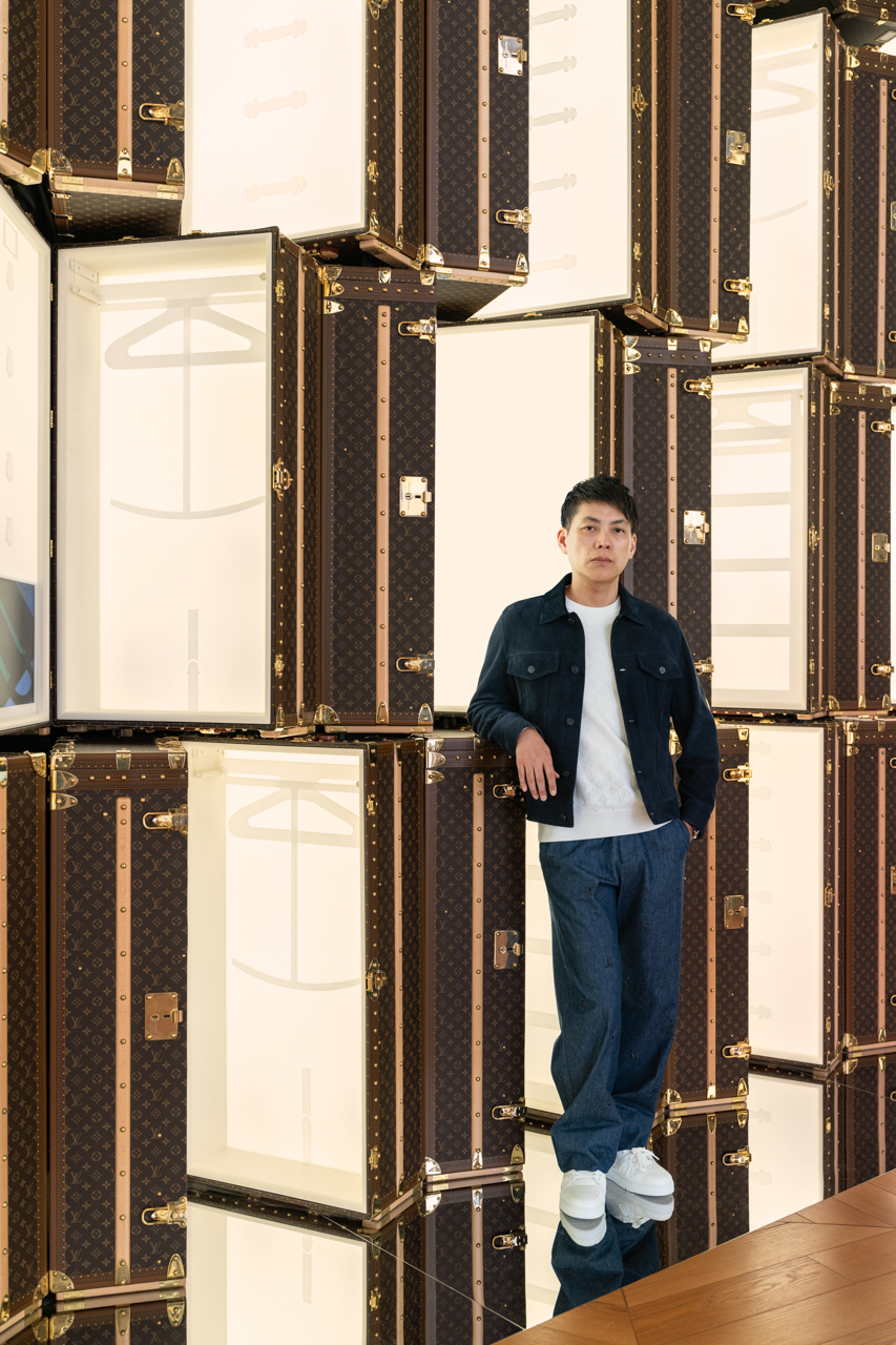 2つの対照的な部屋を、トランクという共通のモチーフを用いて建築としてつくり上げた重松氏。万博会期中の7月15日からは〈大阪中之島美術館〉で、ルイ・ヴィトンの大規模な展覧会「ビジョナリー・ジャーニー」が開催された。会場デザインを担当したのは、同じく重松氏だ。