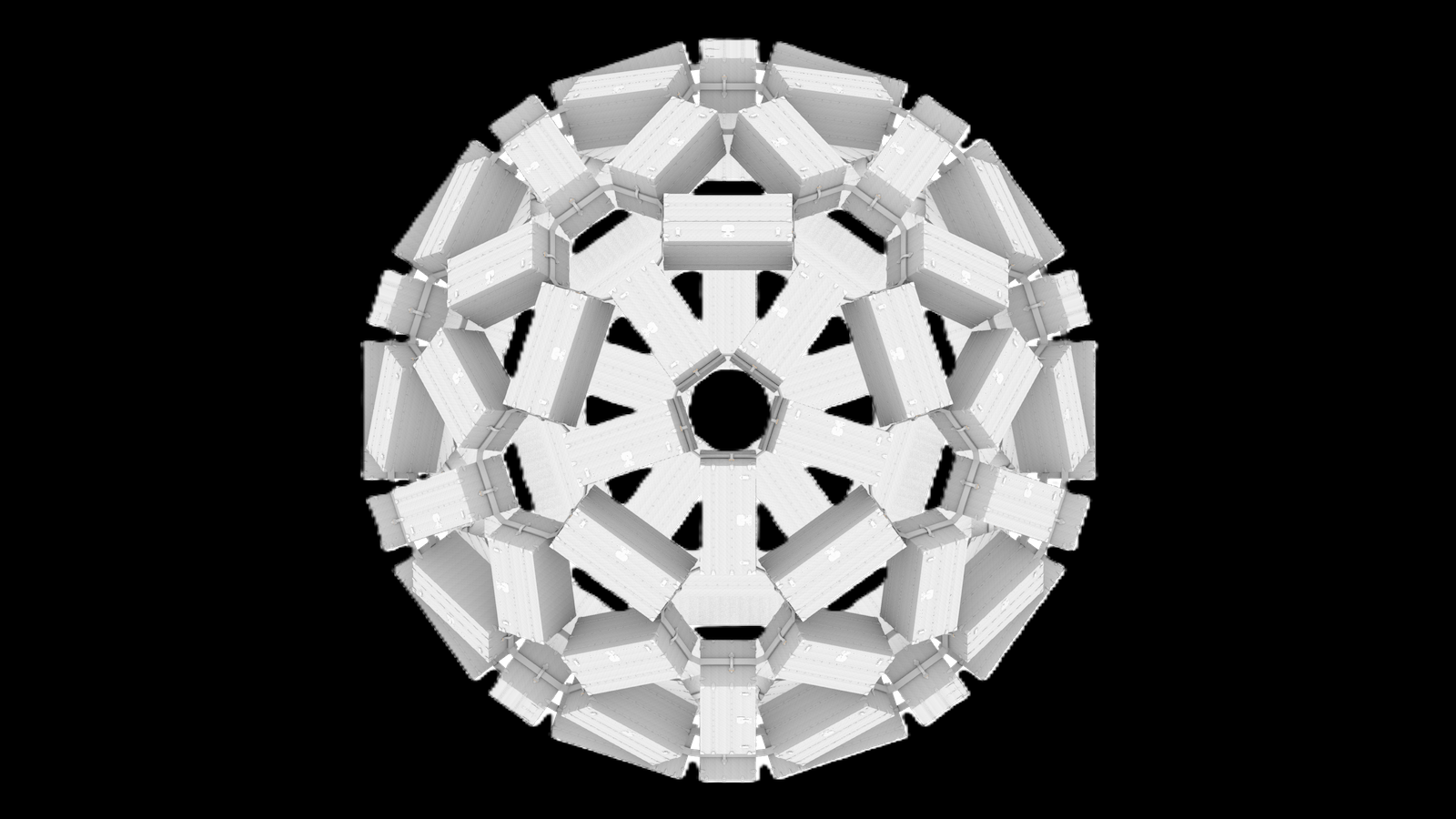 90個のトランクを組み上げて構造解析が行われた。Courtesy OMA