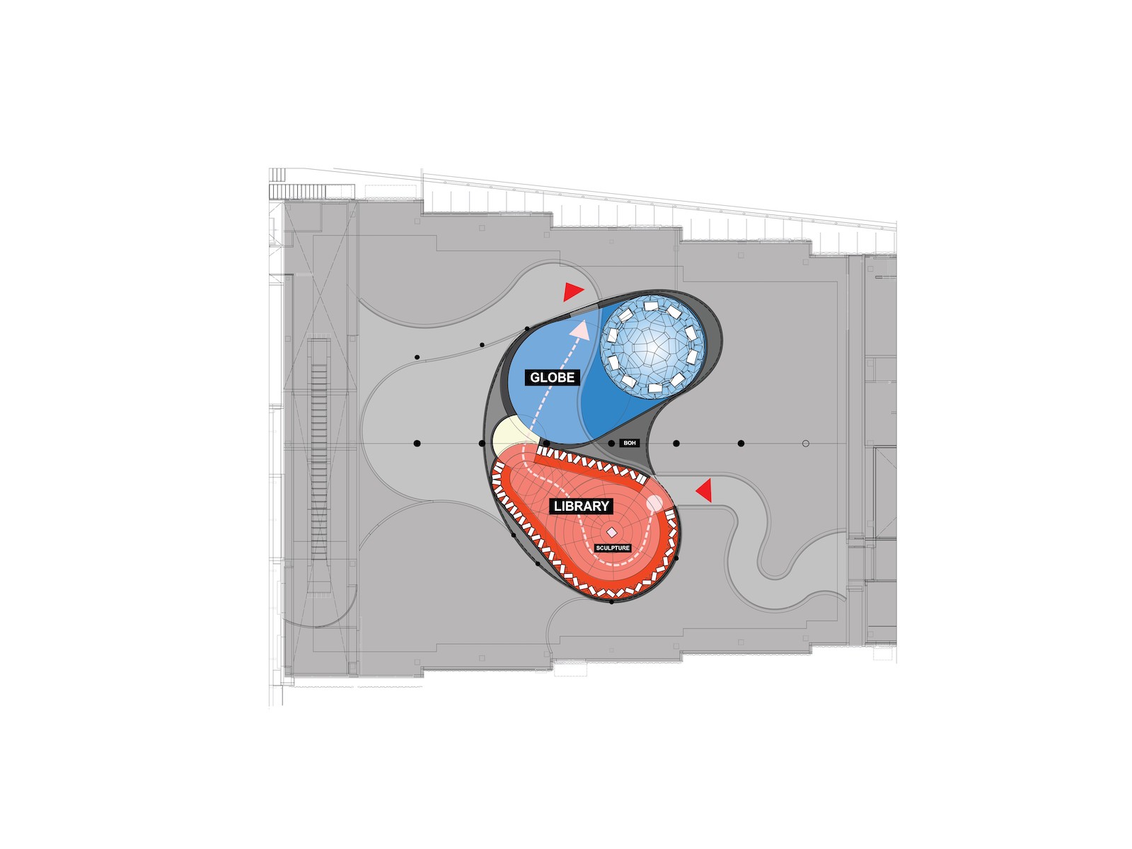 フランスパビリオン内えのルイ・ヴィトンのエリア全体プラン。Courtesy OMA