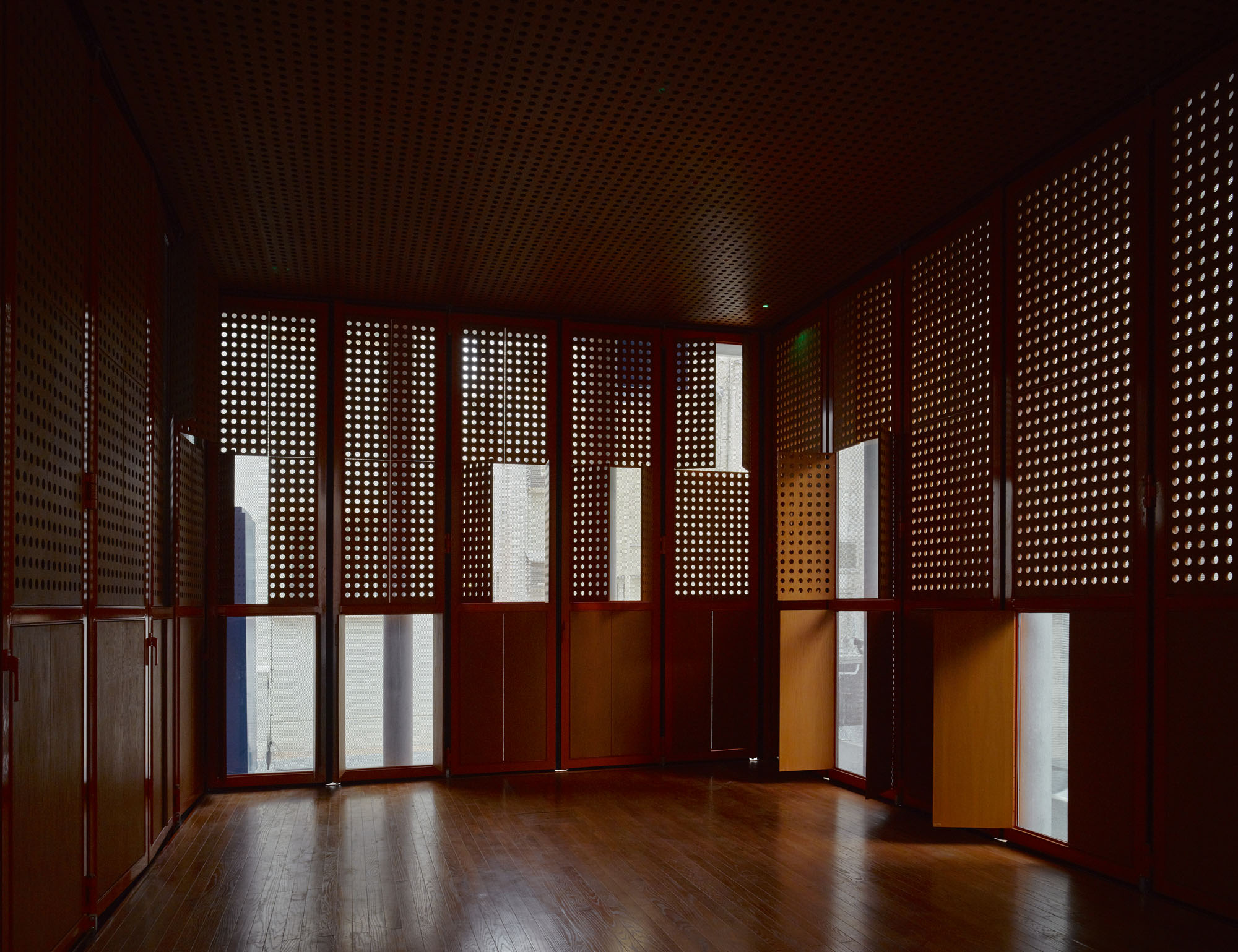 建物が使用される際には、このベールが持ち上げられる。それにより、通りがかりの人々が内部で行われている演奏の様子を垣間見ることができる仕組みとなっている。