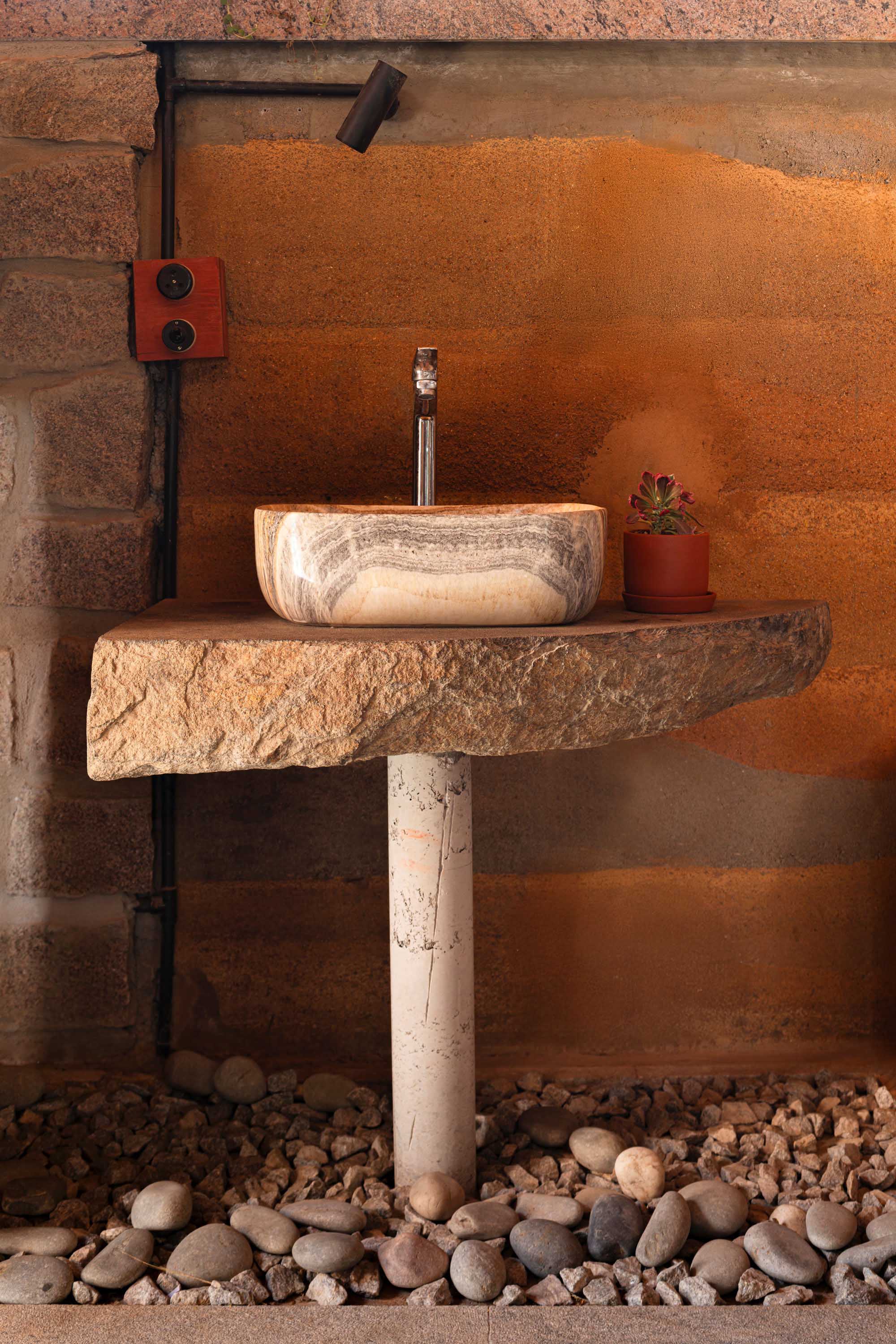 モンスーンさえも魅力的な建築的イベントとして捉えられており、雨水は露出したフェロセメント製の雨樋を伝って地下の貯水タンクへと流れ込み、一滴の無駄も生じない。この住居は、再生可能な建築が人間の体験を高め得ることを証明しており、再生された石の破片と構造物理学を、詩的で持続可能な暮らしの永続的な遺産へと変容させている。