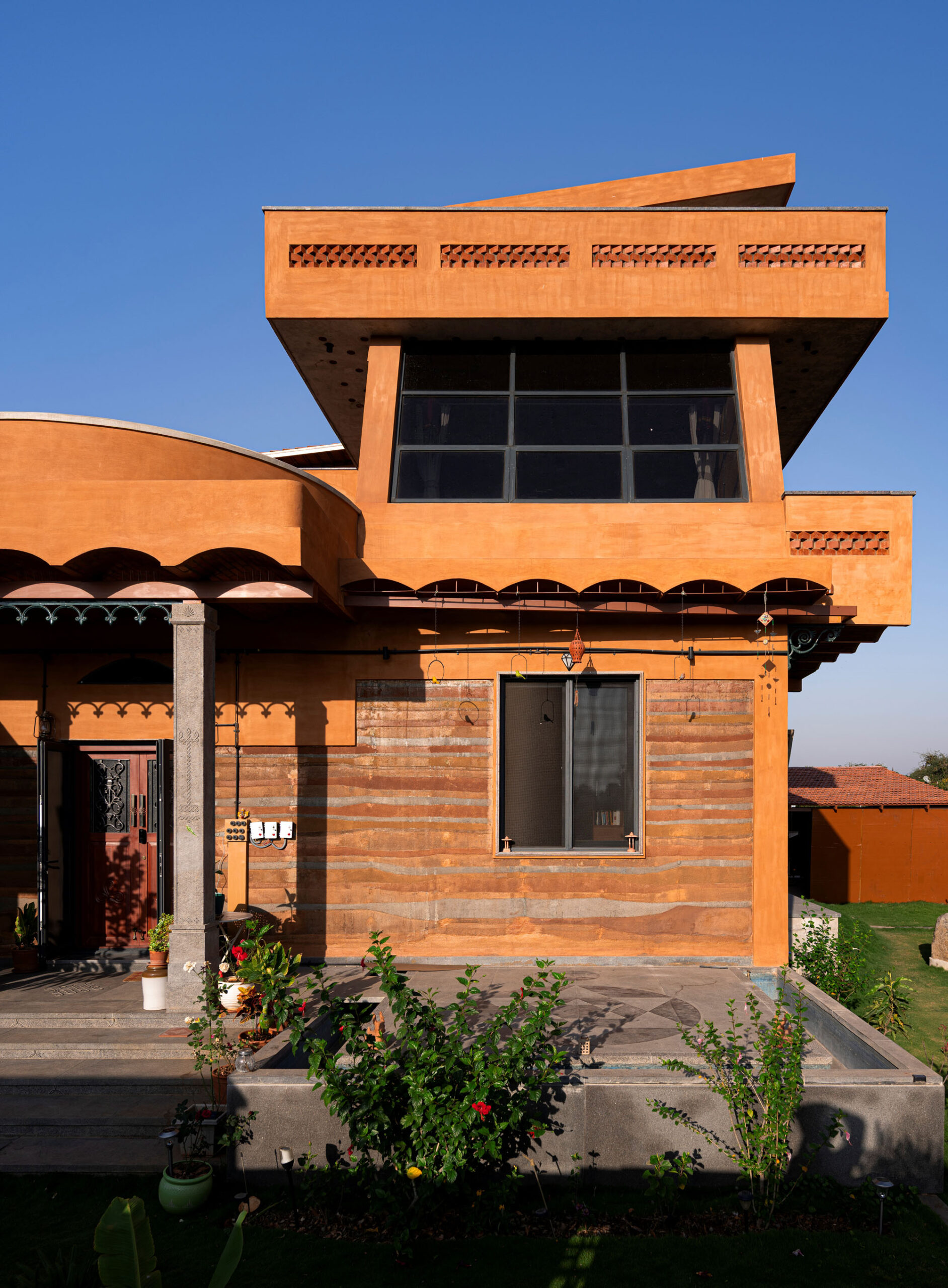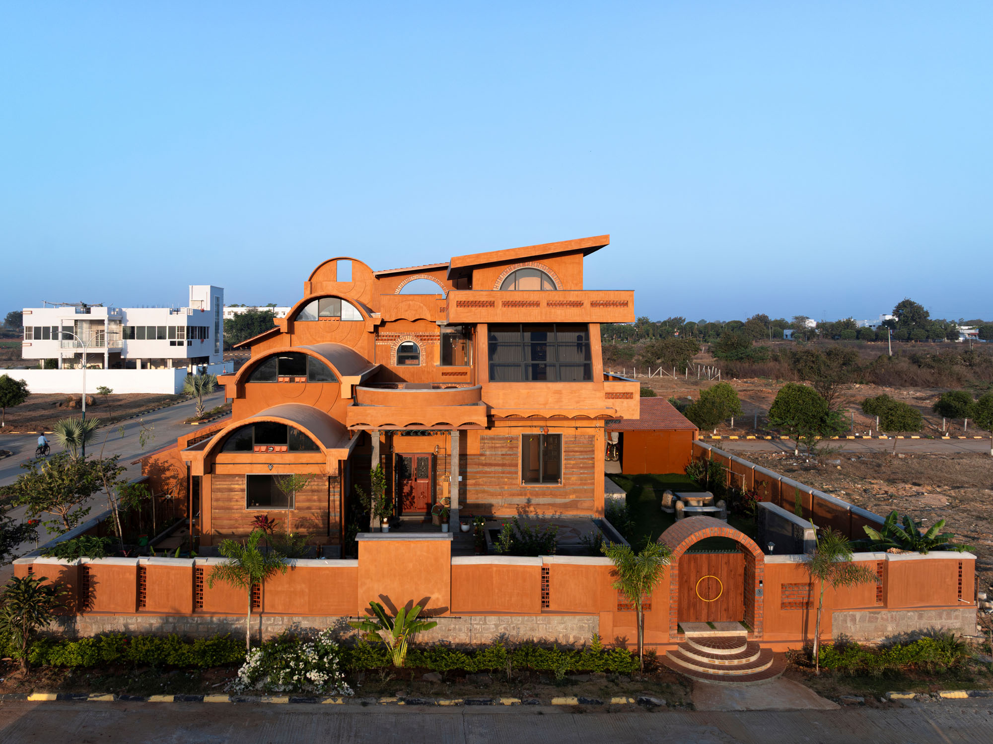 Photographer’s e-mail: studio@vivekeadara.comProject DescriptionAurva Illam: A “Cascading Earth” on Hyderabad’s Urban EdgeSet against the expanding urban edge of Hyderabad, Aurva Illam a name bridging the Sanskrit Aurva (of the earth) and the Tamil Illam (home) is a residential prototype conceived as a “cascading earth” that unapologetically redefines modern luxury for the Anthropocene. Rejecting the ubiquitous glass-and-marble paradigm, the home proposes a new status symbol: bespoke materiality, thermal autonomy, and zero-air-conditioning living.Situated roughly sixty kilometers from the city, the project occupies a corner plot bordered by roads on three sides and a public park to the west, presenting the classic challenge of balancing privacy with exposure. Concurrently, the core design ambition was driven by a desire for a profound architectural duality: seamlessly uniting rigorous, highly optimized spatial logic with a deep reverence for poetic, tactile materiality and handcrafted imperfection. Rejecting the defensive luxury of high compound walls and inward-looking blindness, the architectural response embraces unapologetic fenestration. It utilizes spatial hierarchy, screening, and level differences to engage the street edge while boldly opening the primary volumes, including the master suite, to the western tree canopy.The design philosophy centers on volumetric expressionism, where the building’s dynamic elevation is a truthful map of lived function and climate response rather than applied styling. The massing literally manifests this “cascading earth” concept, unfolding as a sequence of ascending vaults—a cascading landscape that dictates daily rituals while functioning as a passive solar instrument. Lower volumes, such as the grounded kitchen, step up to a double-height living concourse, culminating in the summit suite. This geometry allows higher vaults to cast protective shadows over lower terraces, shielding the interiors from harsh afternoon heat while capturing gentler light.Materially, the home is an intriguing essay in ecological circularity and resourcefulness. The primary envelope resurrects discarded quarry stone debris, transforming lithic waste into monolithic, poured-earth thermal batteries that delay heat transfer across day and night cycles. At the eastern threshold, raw, striated layers of rammed earth offer an immediate, tactile connection to the site’s deeper geology. Both earthen expressions are stabilized with less than seven percent lime and cement, ensuring structural longevity while preserving the soil’s breathable, eco-friendly nature. The roofscape utilizes the science of the void: interlocked terracotta Guna tubes trap insulating air, and brick jack-arches compress between repurposed structural steel.Spatially, the home orchestrates dramatic, sensory contrasts. A double-height living hall acts as a cathedral of clay, flanking a central cooling courtyard known as the Mutram. The kitchen elevates daily routine into a cinematic event, featuring exposed sunburst concrete ribs and a massive lunette light cannon that pours golden morning light into the space. A cantilevered rough-cut granite staircase serves as a lithic spine against delicate cast-iron balusters, framing skylight-washed vertical movement. These rugged elements contrast beautifully with the glass-like sheen of handmade Athangudi floor tiles, rooting the home in deep heritage craft.Aurva Illam ultimately operates as a highly tuned climate engine, achieving complete thermal comfort without mechanical cooling. Its ascending volumes harness the stack effect, naturally drawing cool air from the courtyard and exhausting hot air through apex terracotta jaalis. Even the monsoon is treated as an engaging architectural event; rainwater physically cascades along exposed ferrocement gutters into underground harvesting tanks for zero-drop wastage. The residence proves that regenerative architecture can elevate the human experience, turning resurrected stone debris and structural physics into a lasting legacy of poetic, sustainable living.