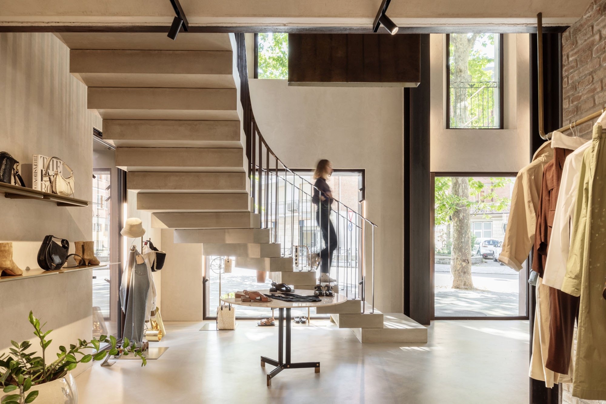 The building houses a variety of activities distributed across several levels, reinforcing its role as a living space open to the community. On the ground floor there is a bistro, a flower shop, and a high-fashion clothing store developed on two levels with an evocative double-height space; on the first floor, a beauty salon; on the second floor, a hair salon; and in the basement, a restaurant. Finally, the third floor contains two apartments. The coexistence of different functions transforms the building into a meeting and social space, capable of offering diverse experiences and accommodating people’s various needs, presenting itself as an integrated, dynamic, and at the same time welcoming environment.