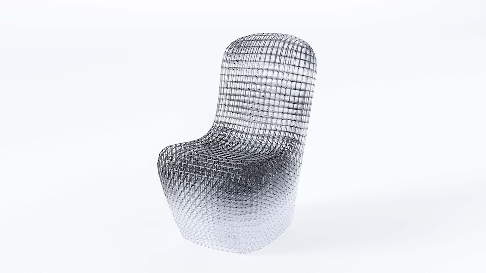 同時展示されるデザインブランド「130(ワンサーティ)」による「Link of Existence」は、椅子を「身体がそこにいたこと」を記録する媒体として捉えた試みです。一本のフレームを建築するように立体を立ち上げる独自の技術を用い、座面から立ち上がる「黒い濃度」によって存在の痕跡を表現。この濃度は、人の体温や重さ、滞在時間の残像のように凝集し、下方に向かって透明へと解けていくグラデーションが特徴です。見る角度によって構造の密度が変化するこの椅子は、不在の中に残る輪郭として「さっきまで誰かがいた」という気配を空間に留めます。