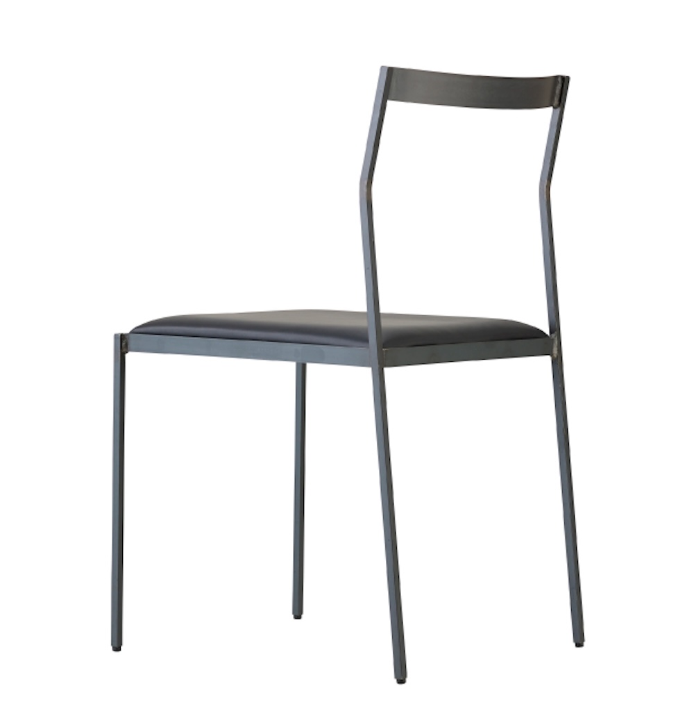 インテリアデザイナー伊藤浩平による「SHIN」シリーズは、不要な要素を極限まで削ぎ落とした、日本建築の端正な美学に調和するミニマルデザインを追求。椅子に必要な構造だけで構成し、細く軽やかな印象ながら、鉄の特性を活かした高い耐久性を備えています。直線的なフォルムにより、日本らしい建築空間との美しい調和を叶え、最大約4脚までスタッキング可能で、美観と機能性に配慮されています。また、黒皮鉄に透明塗装を施し、磨きや火あぶり、槌目仕上げなど職人の手仕事の痕跡が静かな存在感と温もりを生み出します。