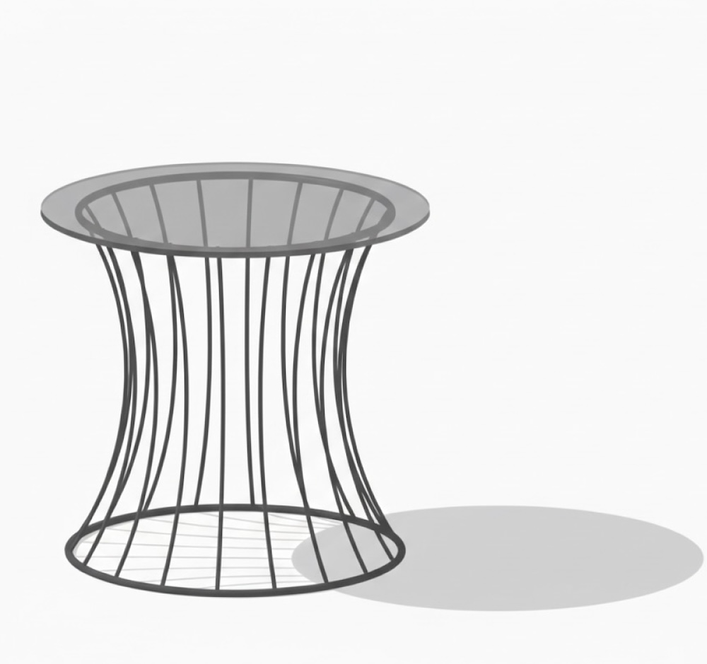 本展示では、新たに加わったテーブルが披露されます。フレームの曲線を視覚的にも楽しめるガラスの天板が特徴で、独特な造形ながら空間に馴染みやすく、主張しすぎないデザインとなっています。