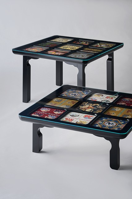 「格天井(The Gou-Buchi)」:日本建築における最高格式の様式をテーブルのデザインに落とし込み、かつては見上げるものであった美意識を、身近な家具の視点から楽しめるよう工夫を凝らしました。
