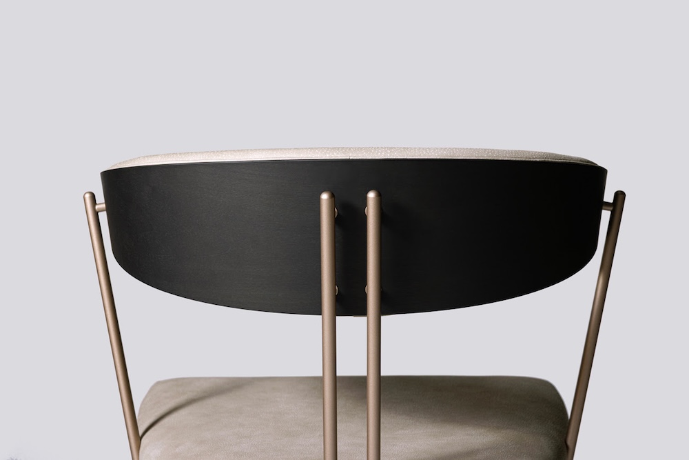 今回の新コレクションが掲げるテーマは、相反する要素が共存することで生まれる繊細な調和。木とスチール、石と金属、そして革。リッツウェルは、これら性質の異なる素材をあえて組み合わせることで、静けさと緊張、あるいは重さと軽やかさといった対立しがちな要素を一つの造形の中に同居させました。それは完璧な均一さを求めるのではなく、素材それぞれの個性が生み出す「ゆらぎ」を内包した均衡です。この絶妙なバランスから生まれる響き合いこそが、使い手の心に静かな安定と深い安らぎをもたらす、ブランド独自の美学を体現しています。