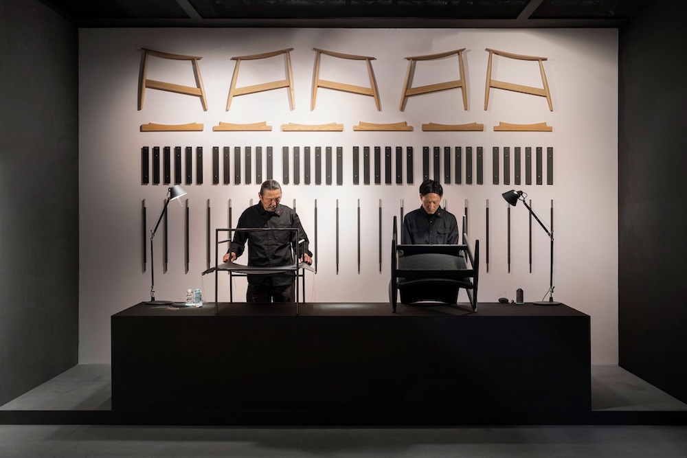 リッツウェルの展示において、ブランドの精神性を象徴する定番となっているのが、自社工場「糸島シーサイドファクトリー」の職人による製作実演です。2022年に大きな話題を呼んで以来、継続されているこのデモンストレーションでは、一台の椅子が形づくられていくプロセスが目前で繰り広げられます。パーツ一つひとつに命を吹き込む手仕事の音や、素材と真摯に向き合う職人の眼差し。完成されたプロダクトの背後にある、目には見えない熱量や職人の息遣いを直接肌で感じる体験は、リッツウェルの家具が持つ深い精神性と品質への揺るぎないこだわりを、より鮮明に来場者へと印象づけます。