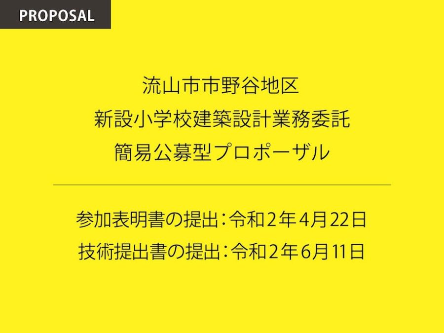 COMPETITION & EVENT 2020.07.03 最優秀提案者:INA新建築研究所 / 流山市市野谷地区新設小学校建設設計業務委託 簡易公募型プロポーザル www.city.nagareyama.chiba.jp