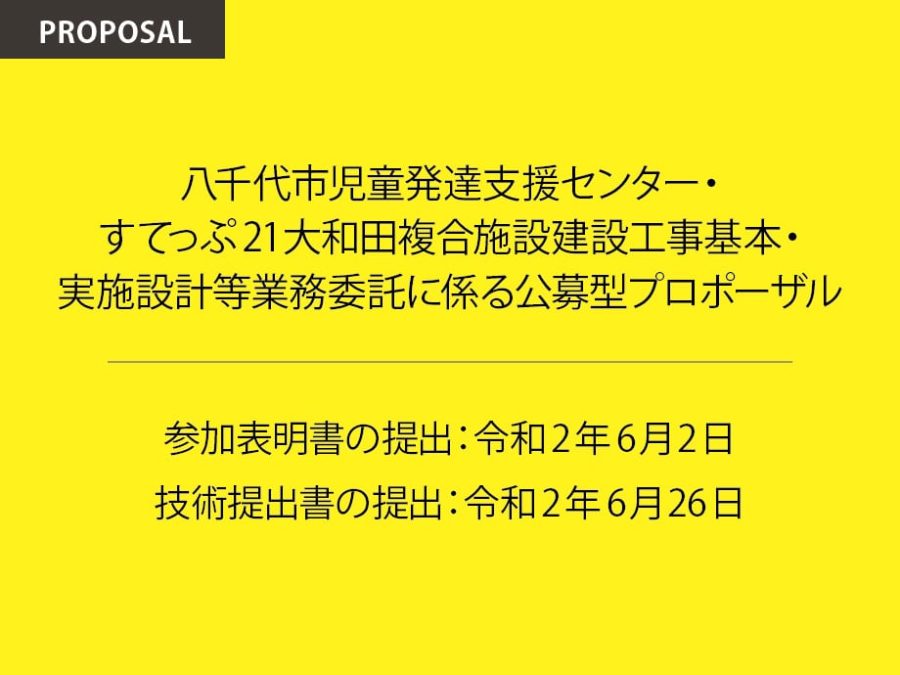 COMPETITION & EVENT 2020.07.15 優先交渉権者:豊建築事務所 / (仮称)八千代市児童発達支援センター・すてっぷ21大和田複合施設建設工事基本・実施設計等業務委託に係る公募型プロポーザル www.city.yachiyo.chiba.jp