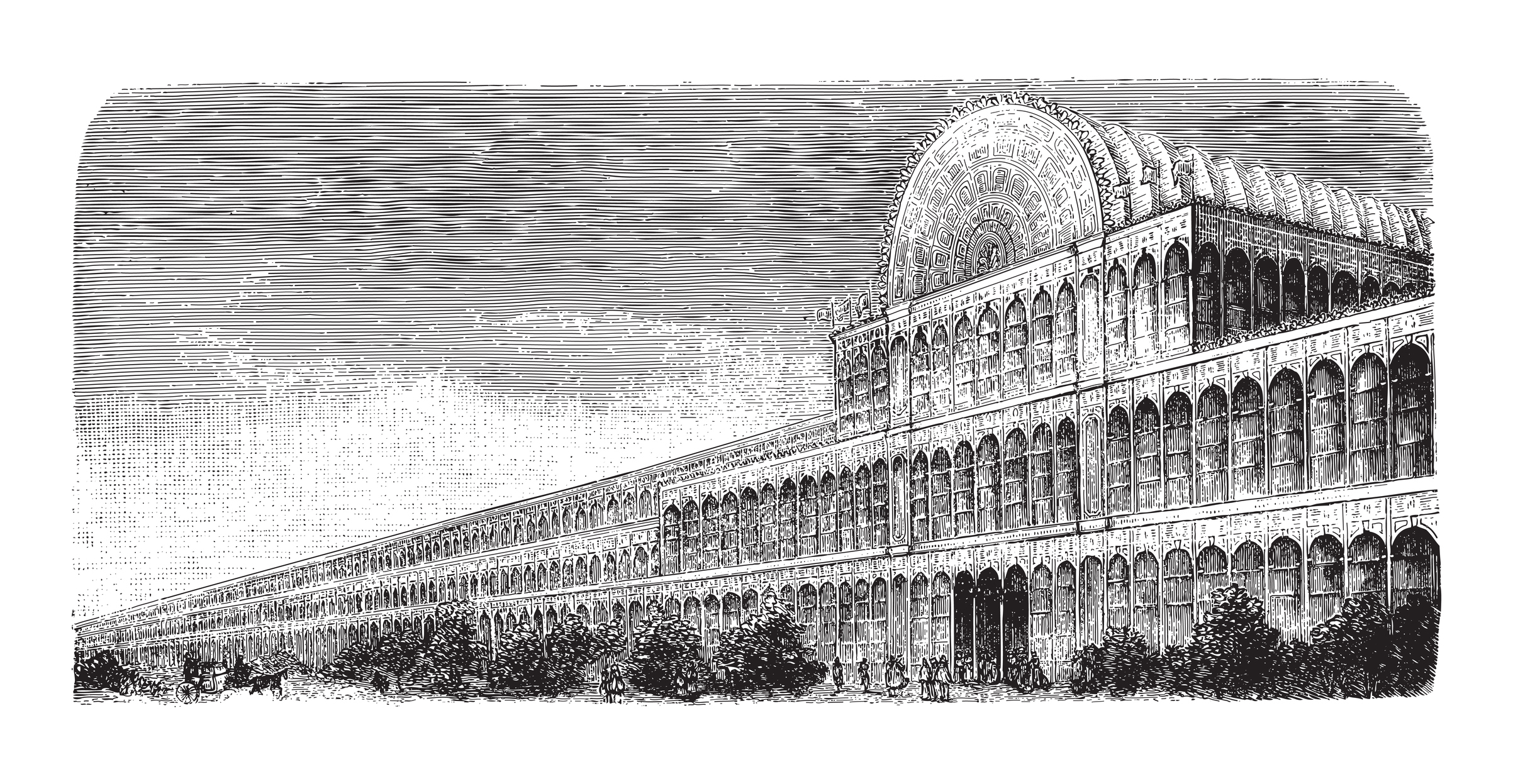 それを象徴するのが、第1回国際博覧会である1851年ロンドン万博にてジョセフ・パクストン(Joseph Paxton)が設計した、鉄骨とガラスでつくられた巨大な建築〈クリスタル・パレス〉です。