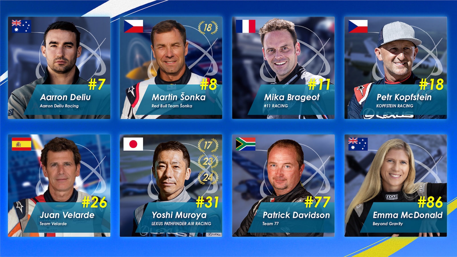 決勝トーナメントに進出した、世界6か国から参戦したパイロット