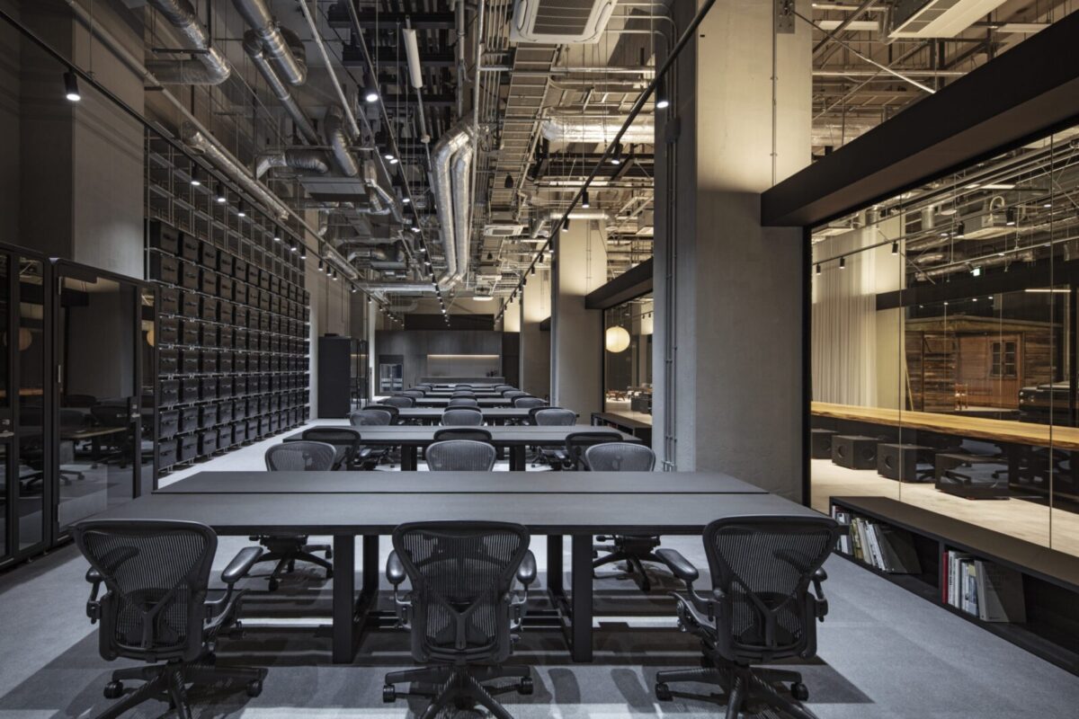 倉庫や展示場として使われてきた歴史を引き継ぎながら、複合型オフィスへと転用したプロジェクトです。既存建築がもつ鉄骨フレームやコンクリートの力強い構造美を生かし、光や植栽、家具の挿入によって空間に柔らかな余白を与えています。過去の時間性と現代の創造性が交差する場として、ブランドの思想やものづくりの姿勢を体現する拠点となることが目指されました。