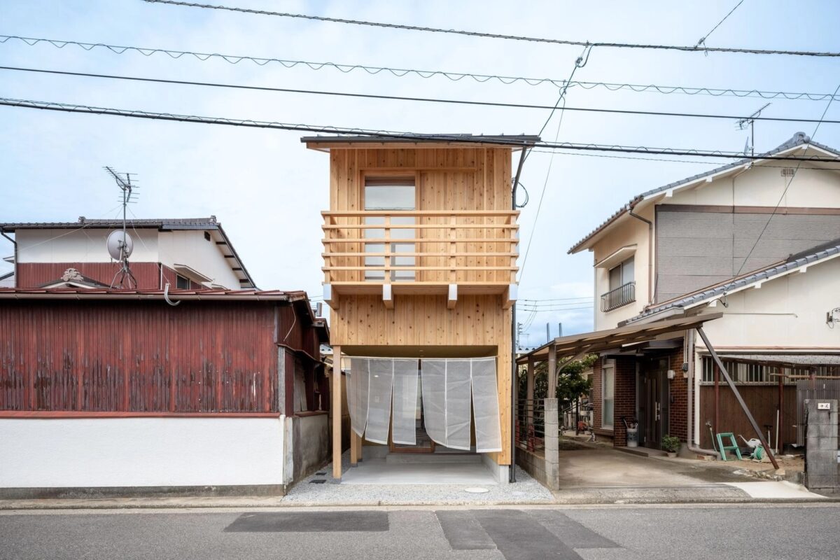 区画整理によって生まれた、間口約4m・18坪ほどの細長い敷地に建つ、住居と仕事場を併せ持つ木造2階建ての住宅です。床面積の拡張ではなく、暮らしの自由度を高める検討がなされた結果、通路を単なる移動空間とせず居場所として編み込み、生活と仕事、家族の時間が重なり合う住まいとなりました。敷地の制限を暮らしの可能性へと転換しています。