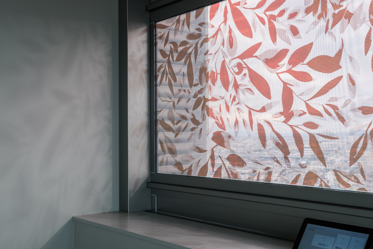レーザー加工でサイズや透過性、グラフィックパターンなど、カスタマイズできることもガラス型ペロブスカイト太陽電池の特徴です。