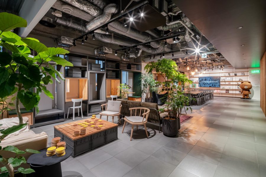 コミュニケーションを促進するためのスペースを拡充し、さまざまなタッチポイントをオフィス空間に散りばめた。またそれらを不規則にレイアウトすることで、偶発的な出会いを生み出す、1つの街のような空間とした。(森田亮、金谷敬介、副島嗣正)