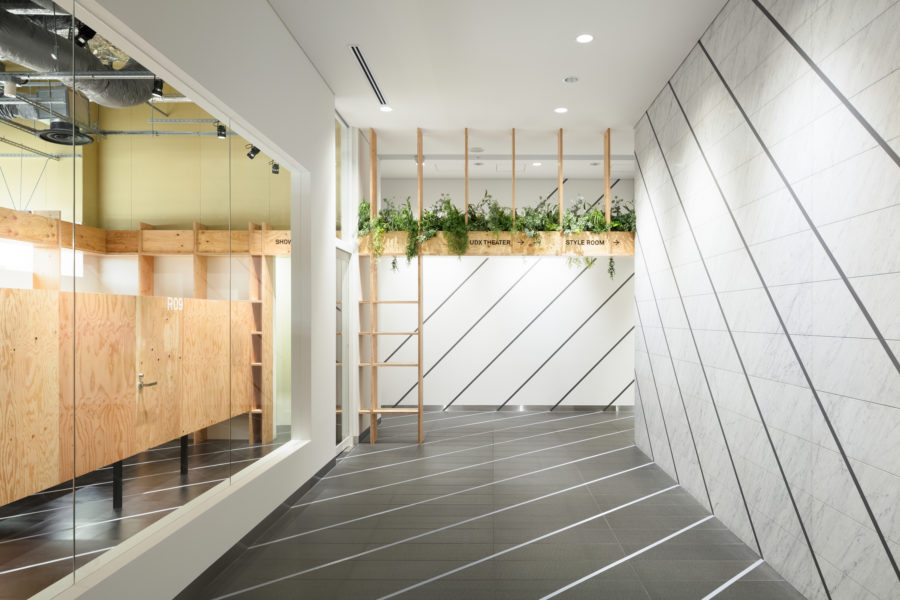 このガラリの1枚1枚のサイズ・角度・素材などの関係性によって、「いかに閉じ、いかに開くか」を原寸大のモックアップによって検討したが、組み合わせは無限にあって、ようやく納得のいく組み合わせにたどり着く。
