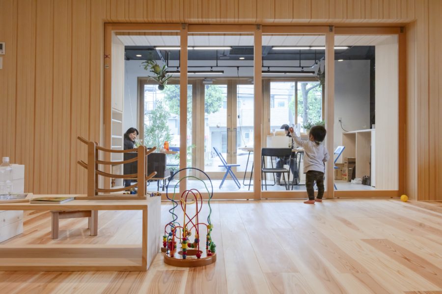 道路に面した交流サロンで地域・親・保育士・子供がつながる保育園