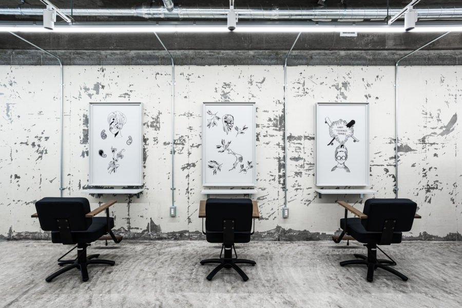 小さなメガネをおさめるためのグリッドを空間全体に展開させた店舗