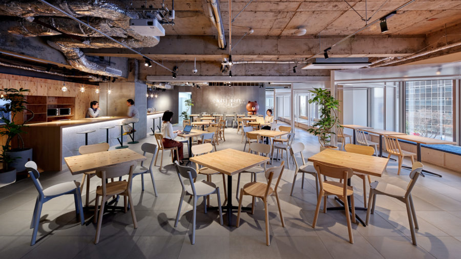 オフィスと都市をつなげる窓際の「大きなカーテン」