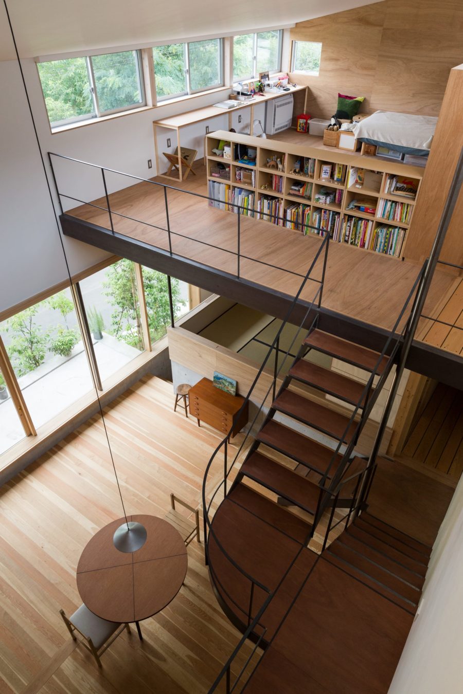 内部の多様性と外部の緑地とのつながりをもたらすスキップフロアの住居
