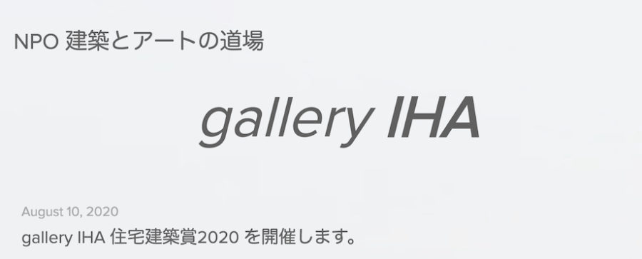NPO建築とアートの道場主催「gallery IHA 住宅建築賞 2020」9月30日応募締め切り