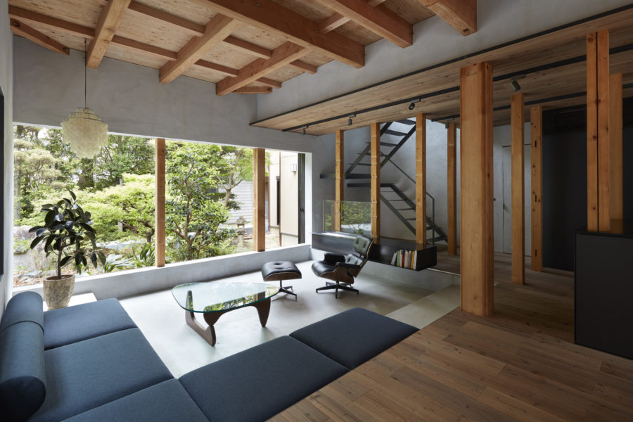 内外を一体化するガラス戸を持ち、自然と家族の存在が感じられる家