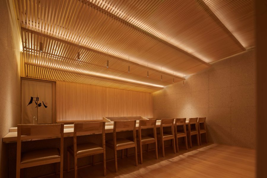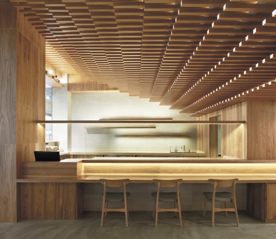 連続性を持たせた木組みで時間の超越性を表現した日本料理店